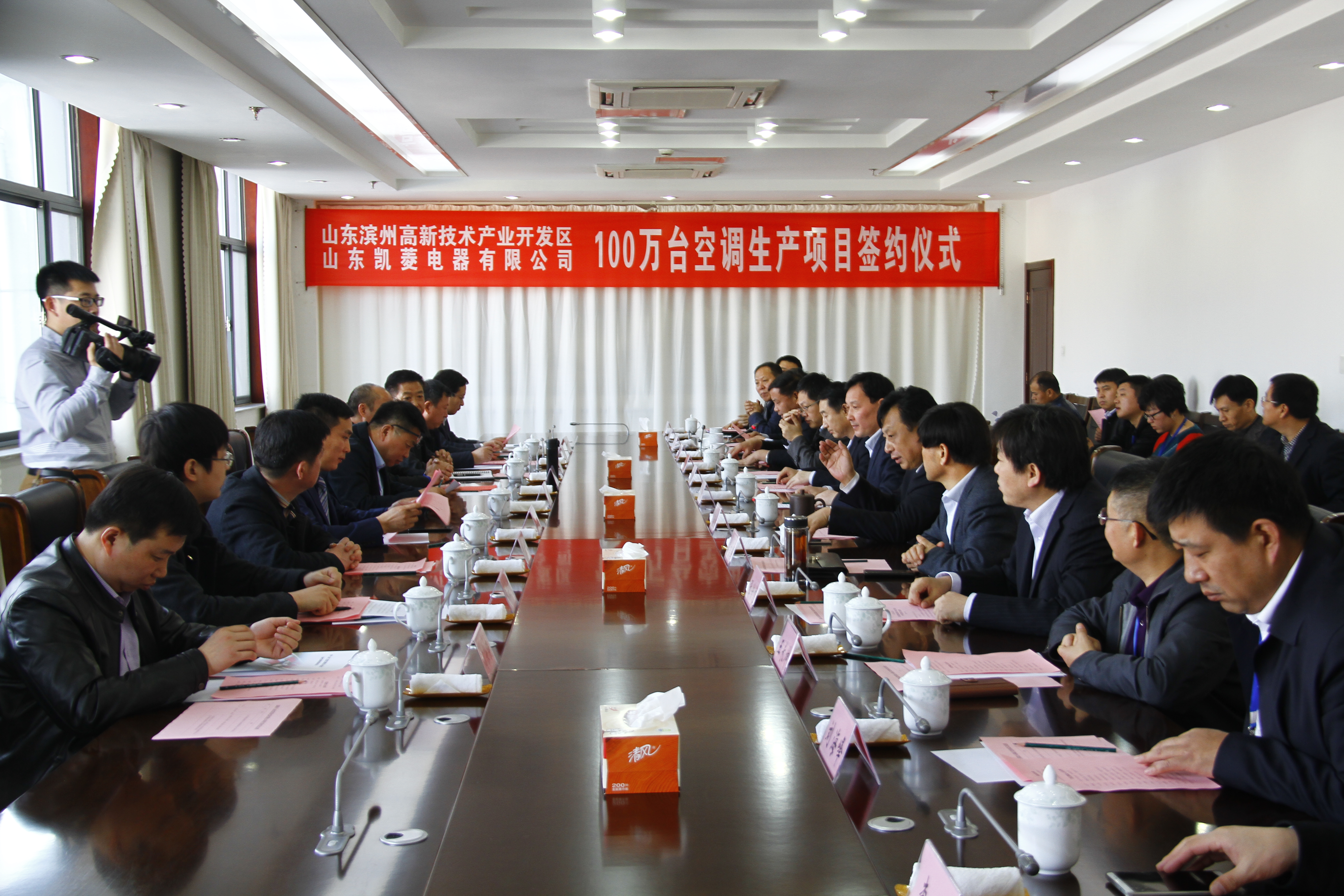 3月6日,滨州高新区管委会与山东凯菱电器有限公司在高创中心202会议室举行了签约仪式。山东凯菱电器有限公司100万台空调生产项目是高新区乃至全市的第一个空调生产项目,它的成功签约,填补了全市家用空调生产的空白,必将有力地推动高新区经济社会发展。